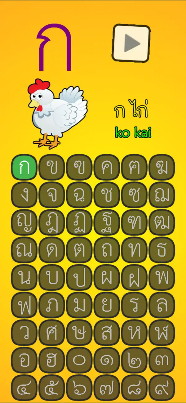• Complete Learning: The app covers all 44 consonants and 10 numbers, providing a solid foundation for your Thai language journey.